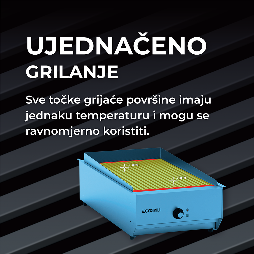 Zahvaljujući inovativnim tehnološkim rješenjima, sve točke na površini grijanja imaju jednaku temperaturu.