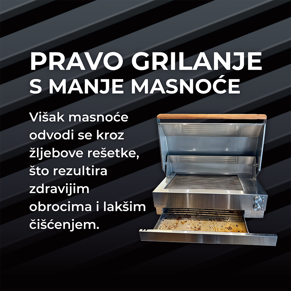 Profinjene izrade, funkcionalni i elegantni, EcoGrill električni roštilji jednostavni su za ugradnju i upotrebu. Jedinstvene konstrukcije, promišljenog dizajna, u potpunosti izrađeni od nehrđajućeg čelika, s inovativnim rješenjima EcoGrill roštilji jedinstveni su na svjetskom tržištu.